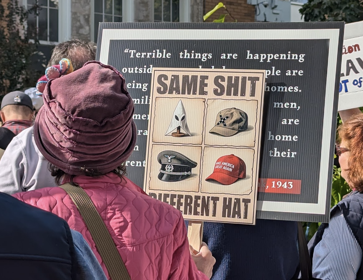 Hundreds of people crowded into the lawn in front of the Havemeyer building on Greenwich Avenue to protest our favorite president ever. Police estimated around 300-400 protesters assembled in Greenwic...