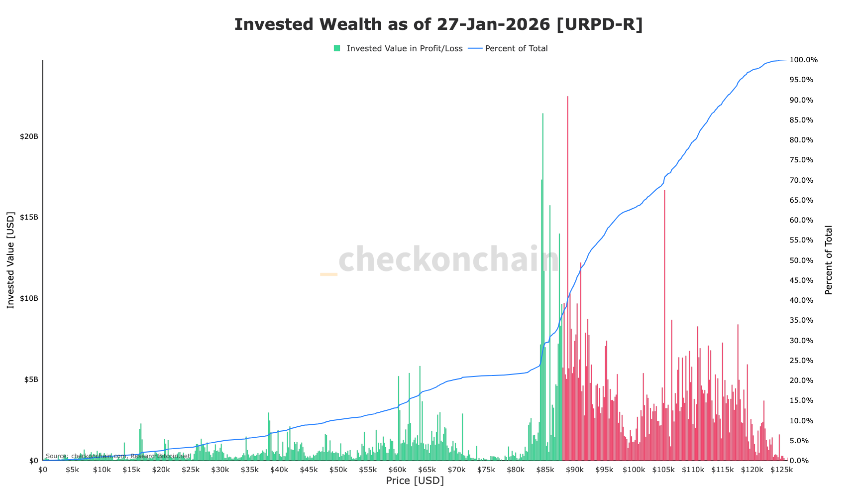 More than half of bitcoin’s invested supply has a cost basis above $88,000