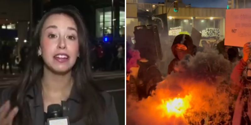 A mob of Antifa militants was captured on video setting off flares and smoke bombs, assaulting attendees, hurling objects at police, and issuing death threats....
