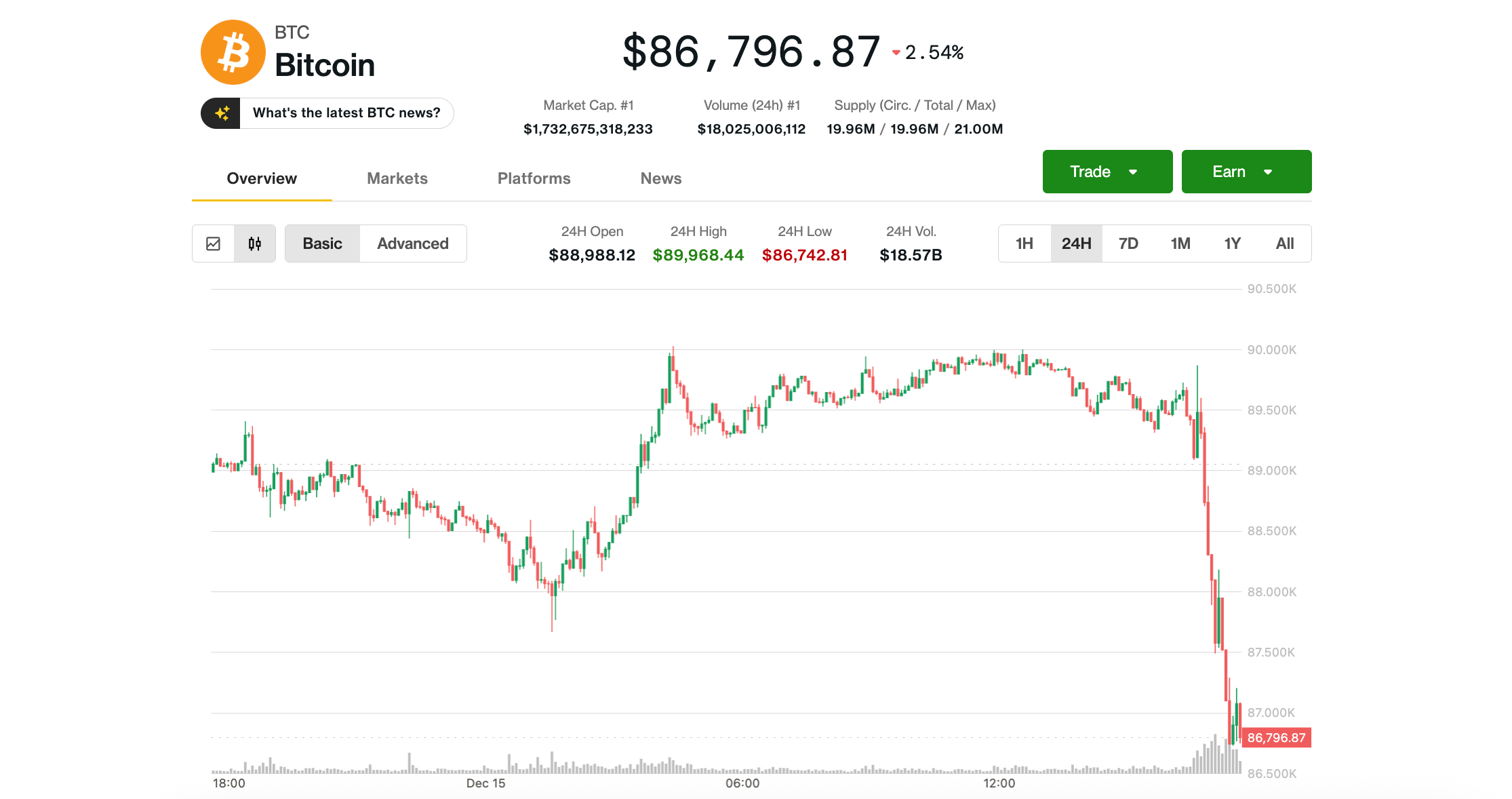 Bitcoin Plunges Below $87K as Crypto Weakness Worsens