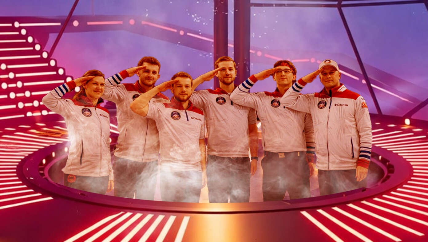 Olympic Curlers Give Final Salute As They Are Lowered Into Carbon-Freezing Chamber Until Next Winter Games