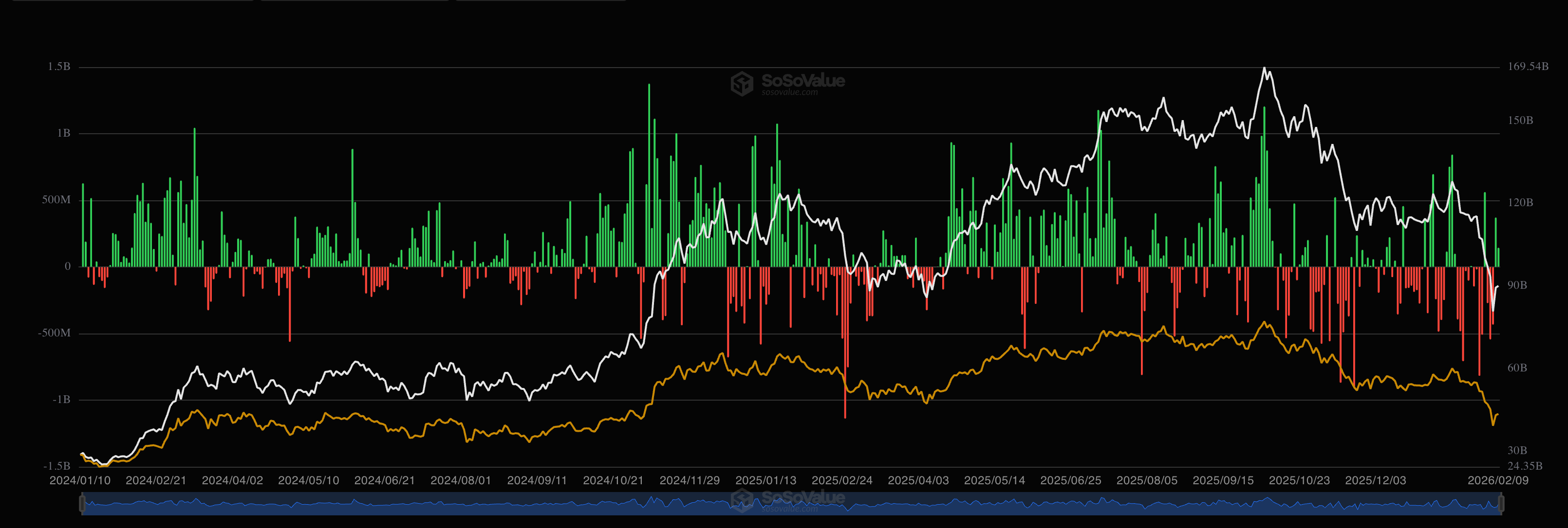 ETF assets under management continue to diverge from spot bitcoin price....