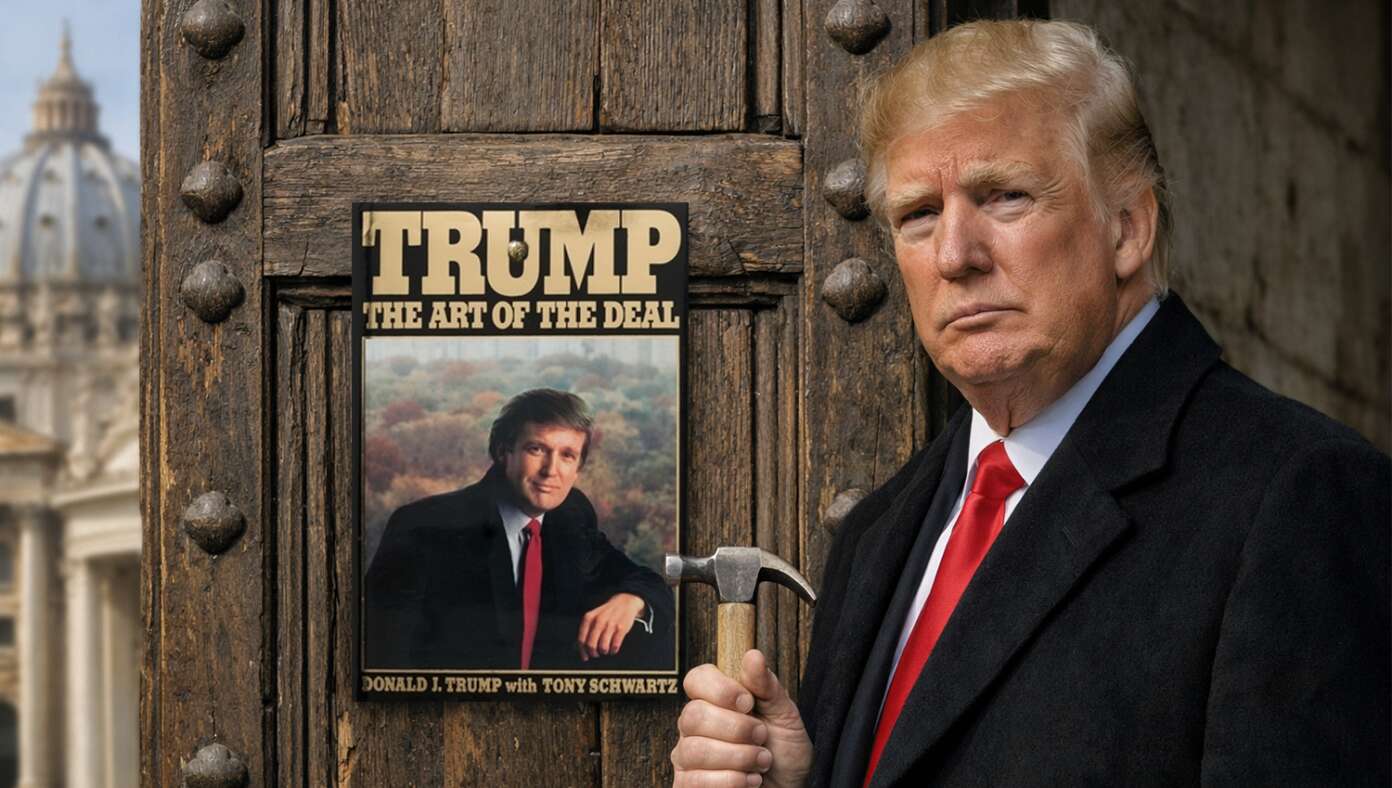 VATICAN CITY — President Donald Trump escalated his feud with Pope Leo this morning, nailing a copy of The Art of the Deal to the door of the Vatican....