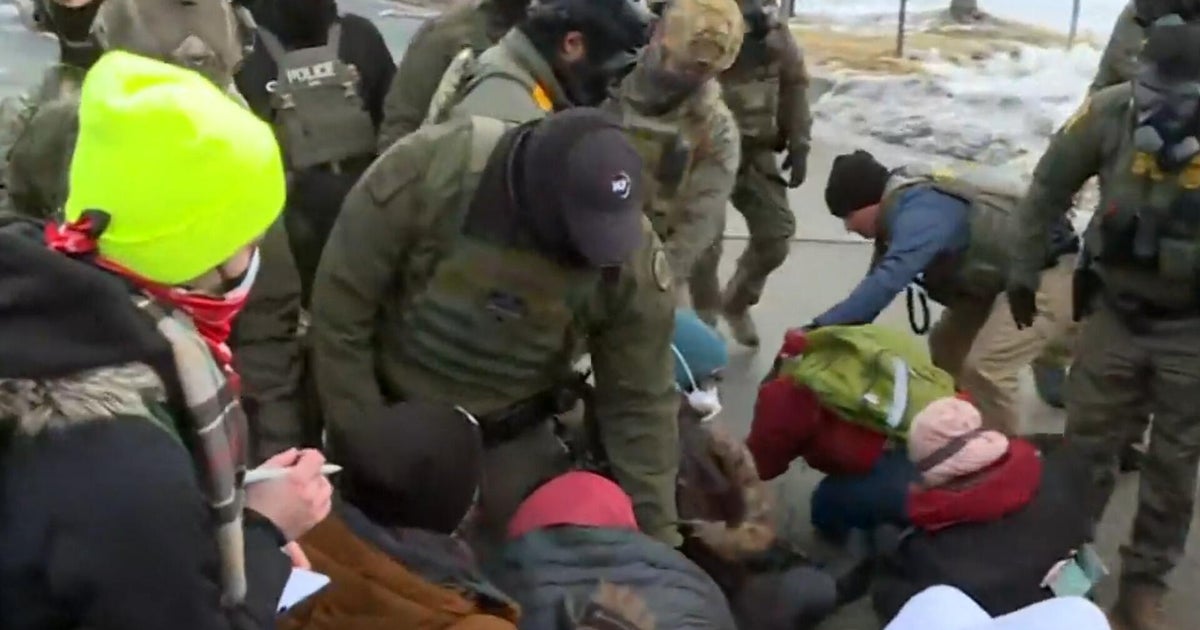 Hundreds of demonstrators protested on Thursday outside a federal building in Minneapolis where ICE is headquartered. Once protesters reached the edge of the property, a line of federal agents began t...