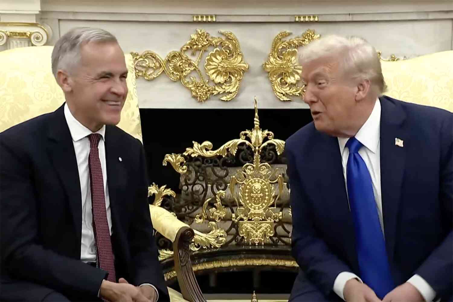 Canadian Prime Minister Mark Carney visited the White House today to talk trade deals and Trump gleefully reminded him of the most important topic of the day....